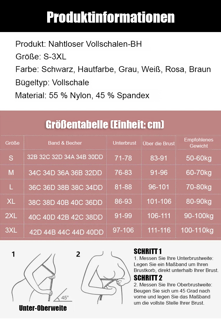 Nahtloser, bügelloser Vollschalen-BH